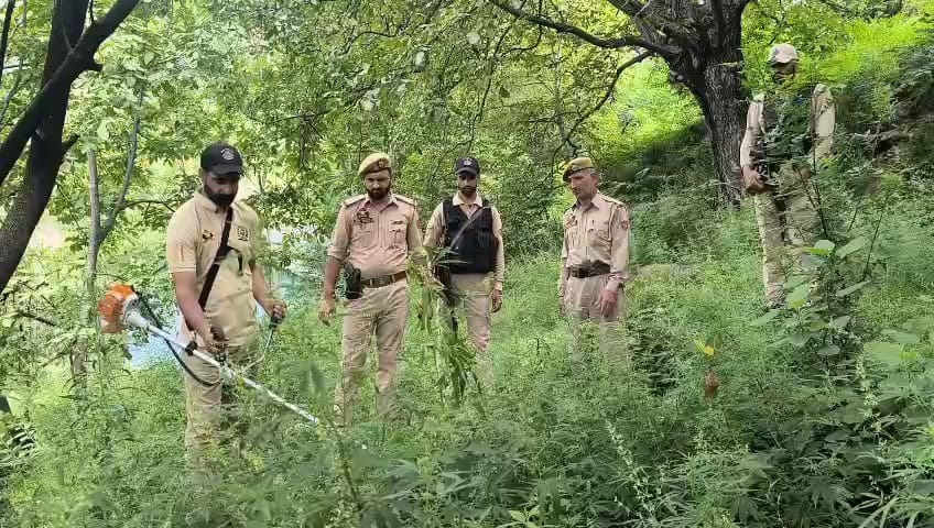 Uri Baramulla : As part of its ongoing anti-narcotics initiative, the Baramulla Police conducted a significant operation in Asham village, located within the jurisdiction of Police Post Uroosa. The drive targeted wild cannabis (bhang) plants growing along roadsides and on state-owned land near Nallah Asham, covering approximately 4 kanals
