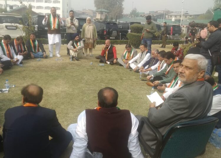 Srinagar, Nov 08 : The Bharatiya Janata Party (BJP) ran a parallel assembly in the lawns of Jammu and Kashmir Legislative Assembly on Friday after the legislators from the party were either marshalled out and staged walk out in a protest to demand the roll back of resolution on special status.