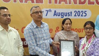 SAMBA, AUGUST 07: The Directorate of Handicrafts & Handloom, Jammu, in collaboration with the Handloom Development Department, Samba, celebrated National Handloom Day at the DC Office Complex Samba, showcasing the region’s rich weaving traditions. Deputy Commissioner Samba Rajesh Sharma, the Chief Guest, lauded the exceptional craftsmanship of local weavers and…