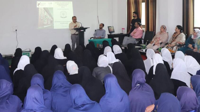 Awantipora, July 19 : A one-day Entrepreneurship Awareness Camp was organized by Women Entrepreneurship Development Cell, CIED IUST at Mantaqui Waqf Higher Secondary School. The objective of the programme was to create awareness among students about entrepreneurship and motivate them to think of it as a possible career choice.