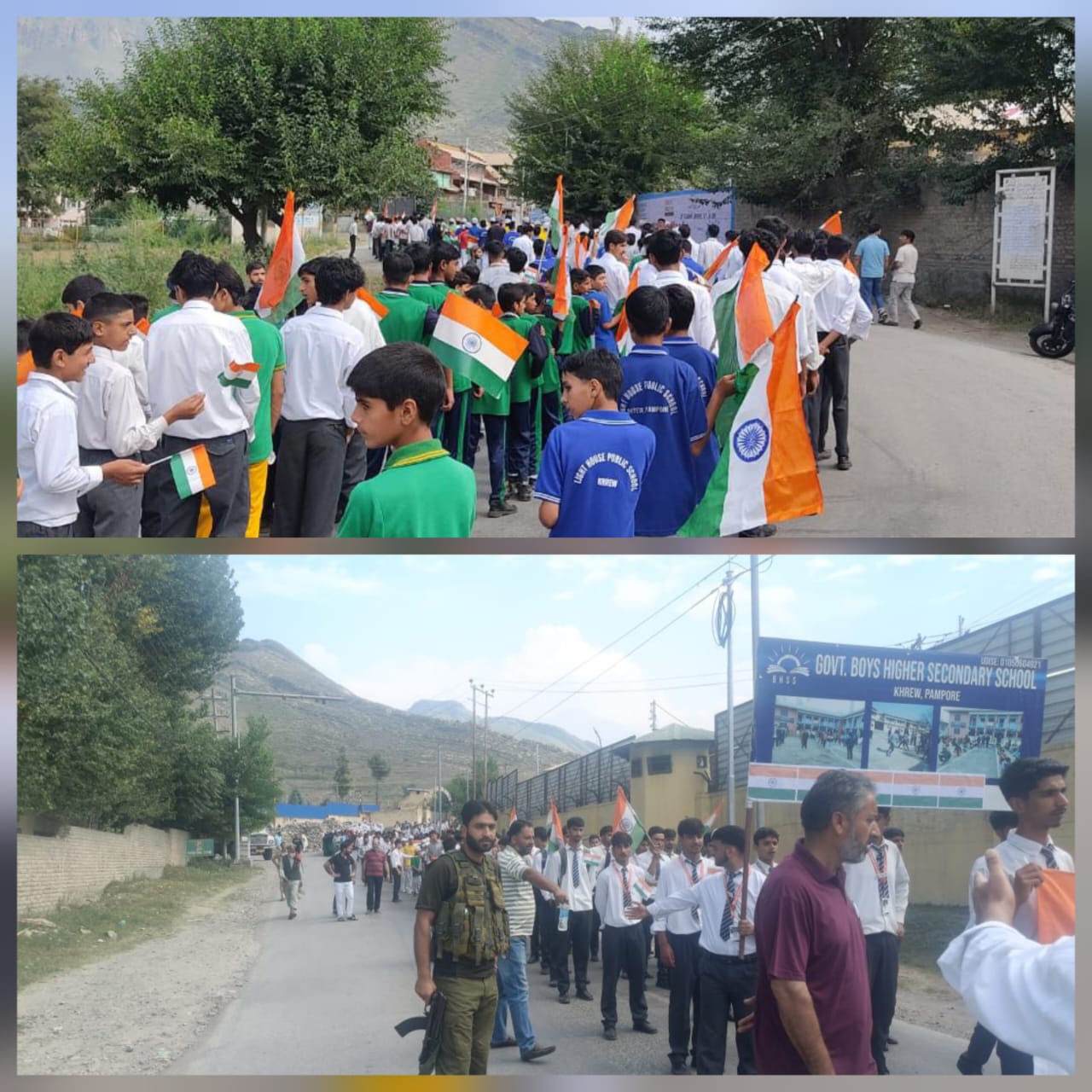 To encourage people to bring the Tiranga home and to hoist it to mark the 79th year of India’s independence. The idea behind the initiative is to invoke the feeling of patriotism in the hearts of the people and to promote awareness about the Indian flag. To Support and promote this campaign among the people a rally was organised by the civil administration and J&K Police District Awantipora.