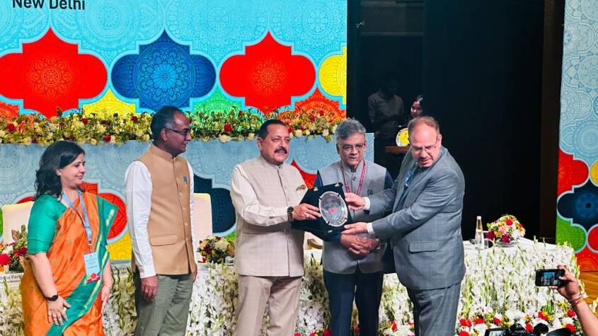 New Delhi: In the Vishwavidyala Anusandhan Utsav 2023, organized by the Department of Science and Technology, GoI, Union MoS (Independent Charge) Science & Technology; MoS (Independent Charge) Earth Sciences; MoS PMO, Personnel, Public Grievances, Pensions, Atomic Energy and Space, Dr Jitendra Singh, felicitated IUST among other recipient Institutions of the PURSE Grant. Prof Shakil Ahmad Romshoo Vice Chancellor, IUST led the IUST’s delegation that comprised Dean Health Sciences, Prof Ayub Qadri, Dr. Muzaffar Rasool, Dr. Basharat Nabi, Dr. Arsheed Ganaie and Dr. Manzoor Ahmad.