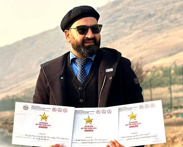 Srinagar, Jan 2: In a remarkable feat, Dr. Syed Wasif Ahmad, Assistant Professor at SKUAST K, has been honored with three prestigious awards as the Achiever of the Year 2023 for his exemplary contributions in Faculty Development, Hostel Management and Student Welfare, Dedicated and Honest GEM Buyer.