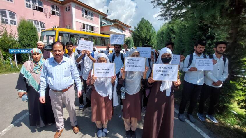 Tral: Anti Tobacco Rally under the banner of Nasha Mukht Jammu and Kashmir Abhiyan was organised by the Department of Zoology in collaboration with the Debates,Seminar and Cultural Committee of the college on 29th of August 2023.