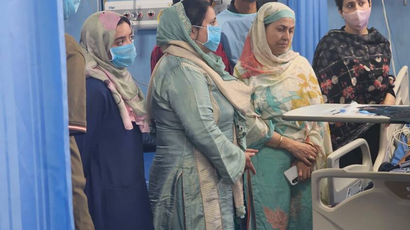 SRINAGAR, AUGUST 05: Minister for Health and Medical Education, Sakeena Itoo today visited a local hospital here to enquire about the ailing former MLA, Dr. Ghulam Nabi Bhat admitted there.
