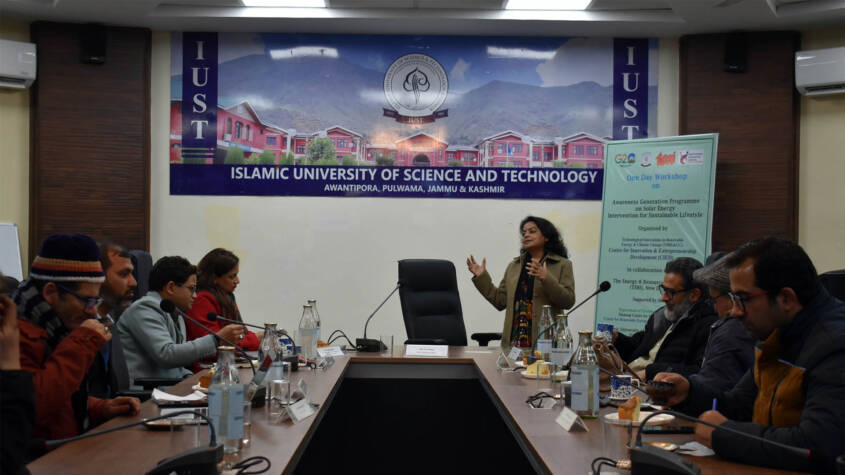 Awantipora, December 28- The Islamic University of Science and Technology today organised a program aimed at enhancing awareness regarding solar energy adoption for a sustainable lifestyle. The “Awareness Generation Program on Solar Energy Intervention for Sustainable Lifestyle,” was organized by the Centre for Innovations and Entrepreneurship Development, in collaboration with The Energy and Resources Institute (TERI), Electrical Energy Department, Mantaqi Centre of Science and Society, and the Centre for Renewable Energy and Sustainable Technologies.