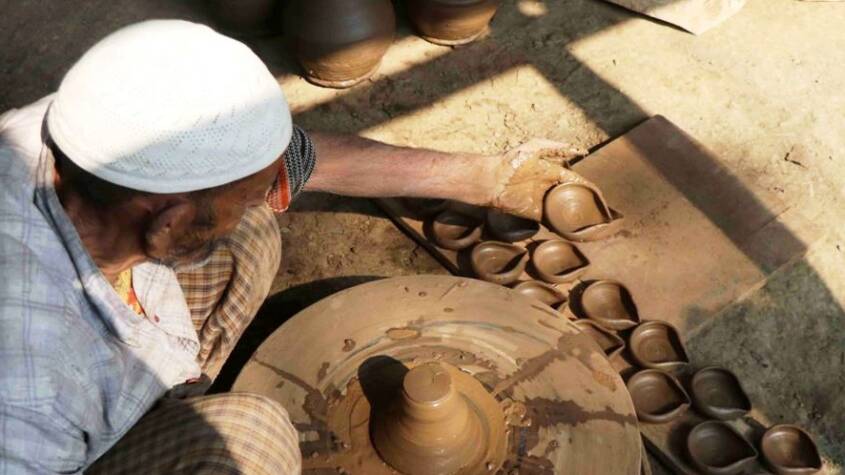 Kashmiri potter busy on wheel making earthen lamps ahead of Diwali