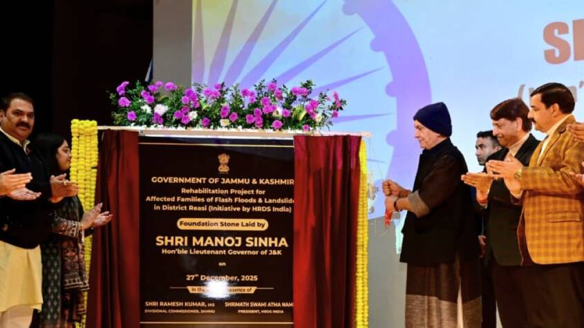 Jammu, 27 December 2025: Lieutenant Governor Shri Manoj Sinha on Saturday laid the foundation stone to build 320 houses completely damaged during flash-floods and land-slides in Reasi District.