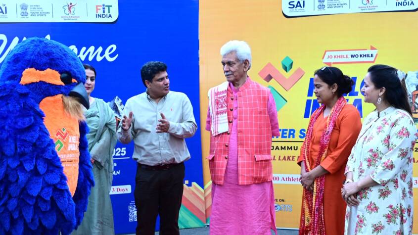 Srinagar, August 19: Lieutenant Governor Shri Manoj Sinha today met the Mascot of Khelo India Water Sports Festival 2025.The Lieutenant Governor extended his best wishes to the Sports Authority of India (SAI), J&K Sports Council, and all the participating players and officials of the 3-day Khelo India Water Sports Festival, scheduled to be held from August 21 to 23 at the iconic Dal Lake in Srinagar.