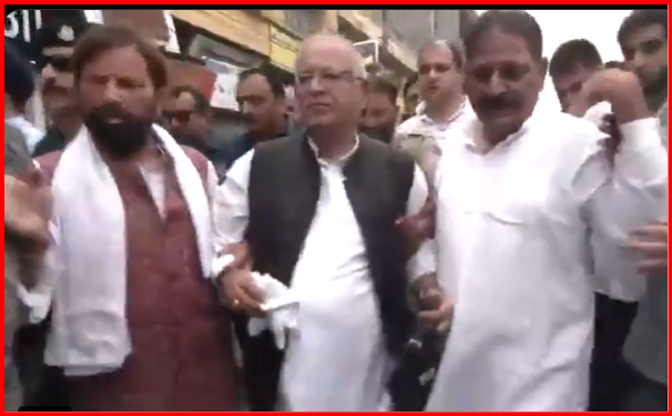 As the large number of senior Congress leaders and workers led by PCC Chief and others took out protest from Congress HQ Jammu, the police tried to stop their march at Shaeedi Chowk leading to scuffle with the police as the protestors tried to broke the police barricade and marched towards Residency road and Raghunath Bazar.