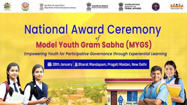New Delhi, January 27: The Ministry of Panchayati Raj, in collaboration with the Ministry of Education (Department of School Education and Literacy) and the Ministry of Tribal Affairs, will jointly organise the National Award Ceremony for the Model Youth Gram Sabha (MYGS) on January 28, 2026, in New Delhi.