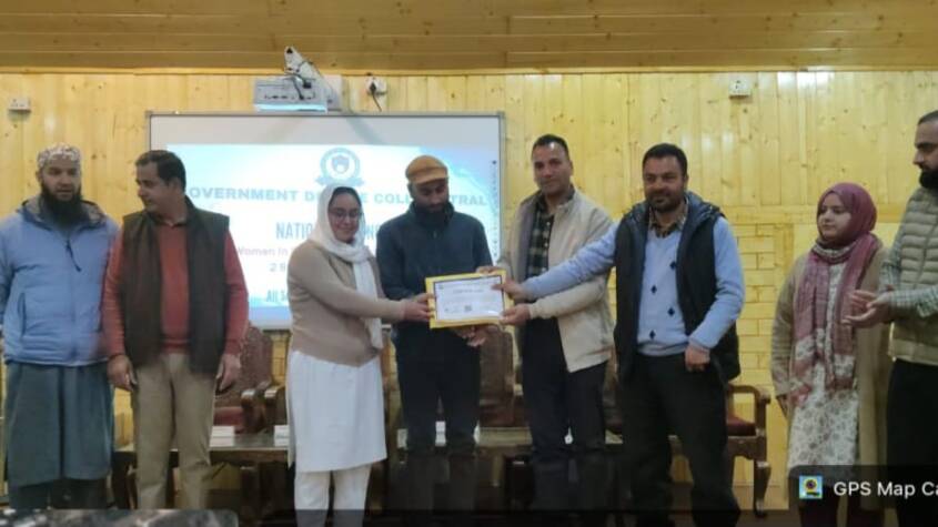 Pulwama: Government Degree College Tral celebrated National Science Day on 28th February 2026 with great enthusiasm under the theme “Women in Science: Catalyzing Viksit Bharat.” The programme commenced at 11:00 a.m. in the college mini-auditorium and witnessed the active participation from faculty members, students, and invited dignitaries. The event began with a warm felicitation ceremony, during which the Principal, Prof. Jasvinder Singh, was welcomed with a bouquet of flowers on the dais. The programme was graced by the presence of Dr. Rafiq Ahmad Khan (HoD Physics), Dr. Shabir Hussain Mirza (Staff Secretary), and Dr. Mohd Rafiq Wani (HoD Botany), along with faculty members, non-teaching staff and students from various departments.