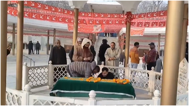 Dr. Farooq, Omar Abdullah lead party functionaries in offering floral tributes, Fatiha at Qaid Mazar