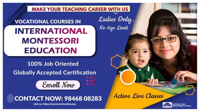 The National Child Development Council (NCDC) is offering ‘100% Job Oriented’ vocational courses in International Montessori Education.