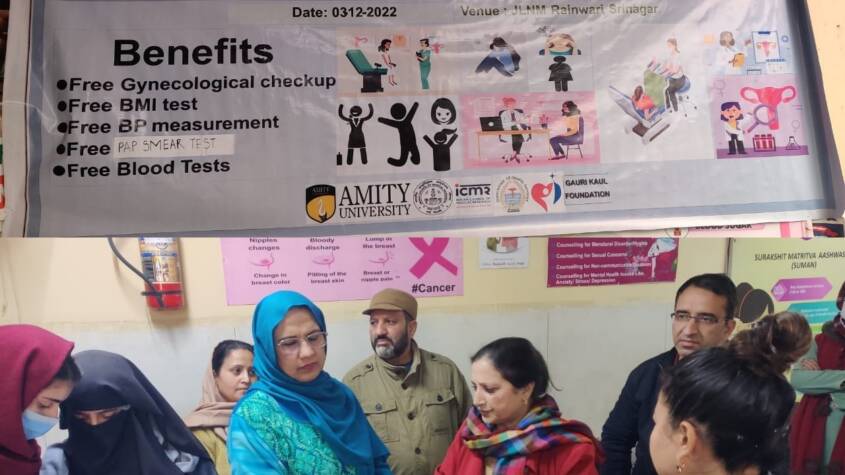 A camp for Early detection of cervical cancer was held in JLNM Hospital, Rainawari , Srinagar on Saturday the 3rd December 2022. Cervical cancer is one of the common cancers in ladies all over the country. The Camp was organized jointly by Gauri Research centre and Amity University, NCR. The management of the hospital and the directorate Health Services, Kashmir helped in carrying out this activity. Prof Nighat Firdous , former HOD, OBG, GMC, Srinagar was the team leader of this event. Gauri Heart Centre and its technical staff under the leadership of its MD Dr Zubair Saleem also provided the logistics and its staff.