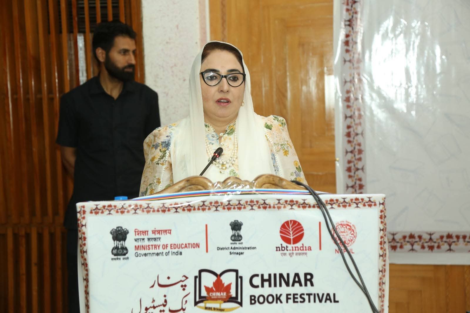Srinagar, 7 August: Chairperson of Jammu & Kashmir Waqf Board & Minister of State Dr Syed Darakhshan Andrabi today participated in the Inauguration Event of a three-day training workshop titled “Development of Literary & Creative Skills in New Generation” organized by the National Council for Promotion of Urdu Language at the Chinar Book Festival 2025 as Chief Guest today. Dr Darakhshan Andrabi said that our new generation has greater potential and she was convinced about their creative potentialities. “We only need to chisle the talent of our youth and provide them suitable platforms to express themselves. Encouragement and poshing the capabilites of our young generation can give us surprising results”, said Waqf Board Chairperson. She congratulated the Director of National Council for Promotion of Urdu Language (NCPUL) and the Dean Arts of Kashmir University Prof Ainaz Mohammed Sheikh for organising this much needed workshop for young writers on the sidelines of the Chinar Book Festival. “We have come out of a long speel of suppression and violence which has crushed the potentialities of our youth. Such fairs, festivals and workshops are a necessity to let our youth come out of the darkness of suppression and express themselves with positivity and confidence “, said the writer politician Andrabi.