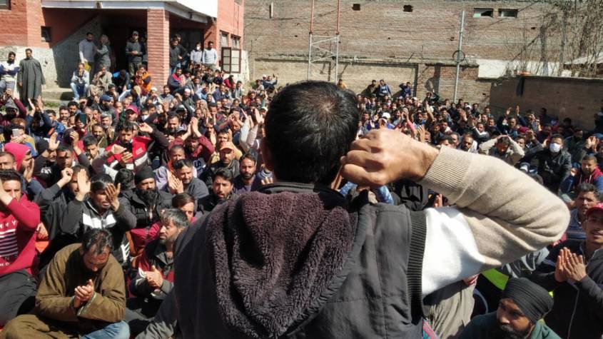 PDD’s PDL/TDL employees stage protest in Awantipora, demand redressal of issues