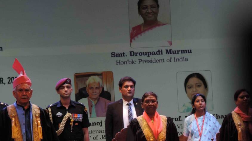 Such young people deserve all the praise and accolades for lending a helping hand to others through social service, the president said.”I would like to see the youth of Kashmir actively participate in social service while pursuing their academics. By doing this, you can bring change in the country and become a role model for the nation,” she said.Earlier in the day, the president paid tribute to fallen soldiers at the Army headquarters here. In his address, the Lt Governor extended his felicitations to the graduating students and wished them success in their future endeavours.