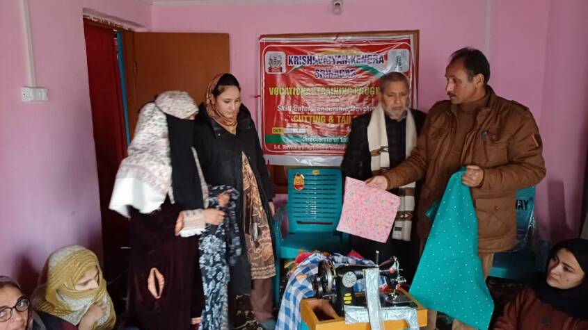 Srinagar: In a bid towards sustained women development and empowerment, Krishi Vigyan kendra Srinagar kick started one month vocational training programme on “Cutting, Tailoring and Stitching” at Nagbal Dara (Block Harwan) Srinagar today on 8th of January 2024.