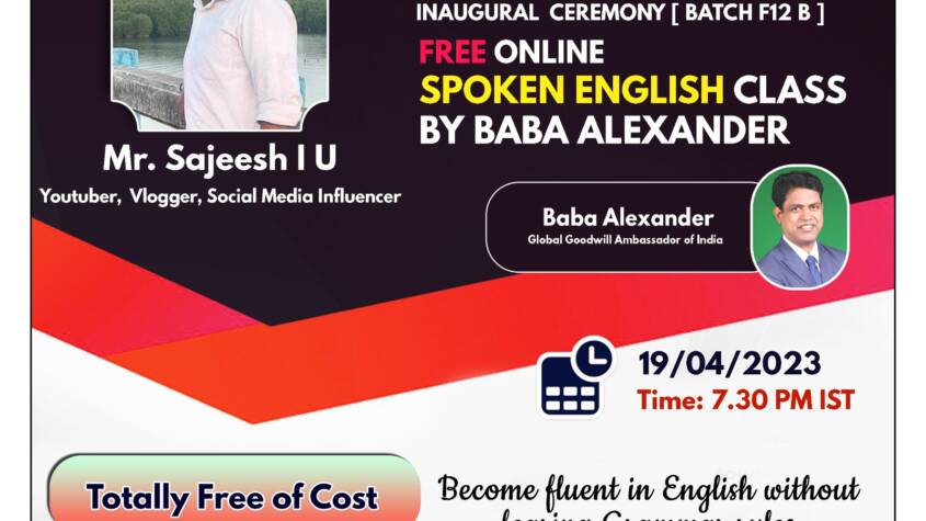 Sajeesh I U, who is a Youtuber, Vlogger & Social Media Influencer, will be inaugurating the National Child Development Council’s Free Online Spoken English Class.