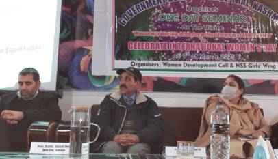 Tral, 9 March: International Women’s Day was celebrated at Govt Degree College Tral on Tuesday, which was attended by the students and staff members. The theme of the Seminar was “Women in Leadership: Achieving an Equal Future in a COVID-19 World”. The program was jointly organized by Women Development Cell…