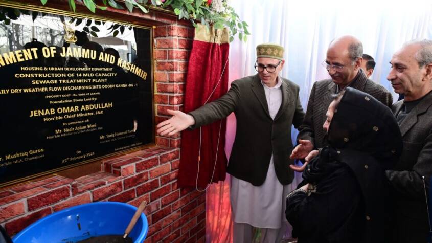 At the same venue, the Chief Minister laid the foundation for two major sewage treatment projects under H&UDD (UEED) to curb pollution in Doodh Ganga — a 14 MLD STP at Aloochi-Bagh, Srinagar (₹5060.47 lakh), and a 6 MLD STP at Mochua, Budgam (₹6772.32 lakh) to treat dry weather flow from Chadoora to Baghi-i-Mehtab — significantly strengthening wastewater management and environmental protection in the area.