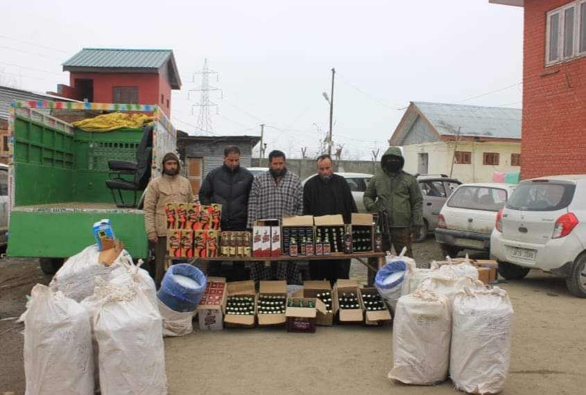DISTRICT POLICE KULGAM ARRESTED THREE BOOTLEGGERS ALONGWITH 240 BOTTLES OF ILLICIT LIQUOR AND CONTRABAND SUBSTANCES