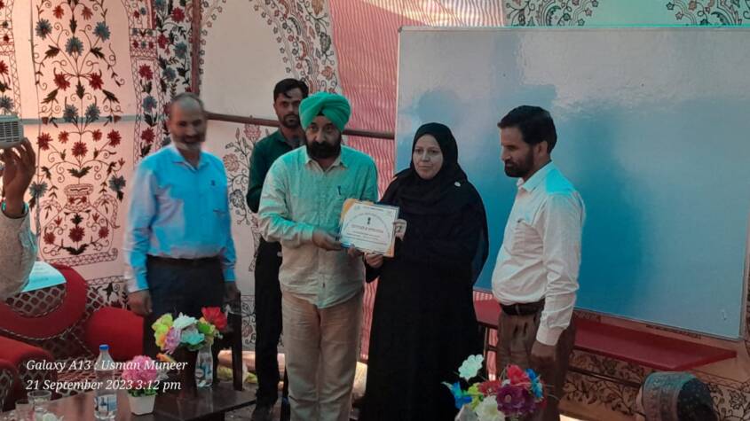 Pulwama: Chairman Standing Committee Education Dr.Harbaksh Singh took a review of Education sector in Education zone Shadimargh today on 21.09.2023 at KGBV Bagi Sangerwani Pulwama alongwith DDC member Mtr.Mansha Jan.