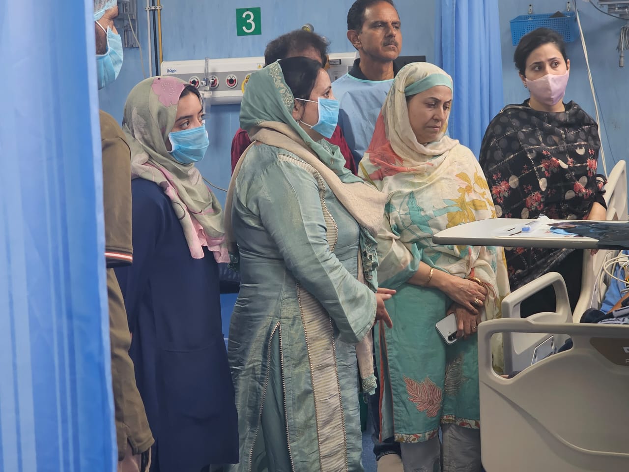 SRINAGAR, AUGUST 05: Minister for Health and Medical Education, Sakeena Itoo today visited a local hospital here to enquire about the ailing former MLA, Dr. Ghulam Nabi Bhat admitted there.