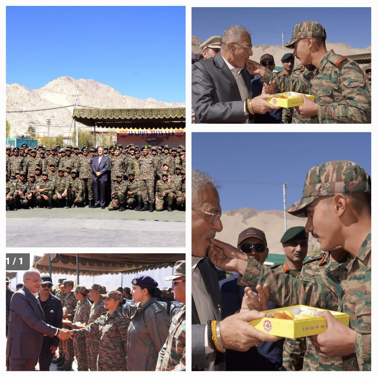Leh,Oct 20 : LT governor Kavinder Gupta celebrated Diwali with Army personnel of the Fire and Fury Corps at the Rinchen auditorium in Leh today ,extending greetings and gratitude to the soldiers guarding the nations frontiers .The lt governor praised the courage and dedication of jawana serving in extreme weather and terrain conditions along the borders .he also paid rich tributes to the heroes of Kargil and Siachen ,acknoldging their supreme sacrifices in safeguarding the nations sovereignty .gupta reiterated the unwavering commitment of the government of india and the territory administration towards the welfare of soldiers and their families ,an official spokesperson said .(UNI)