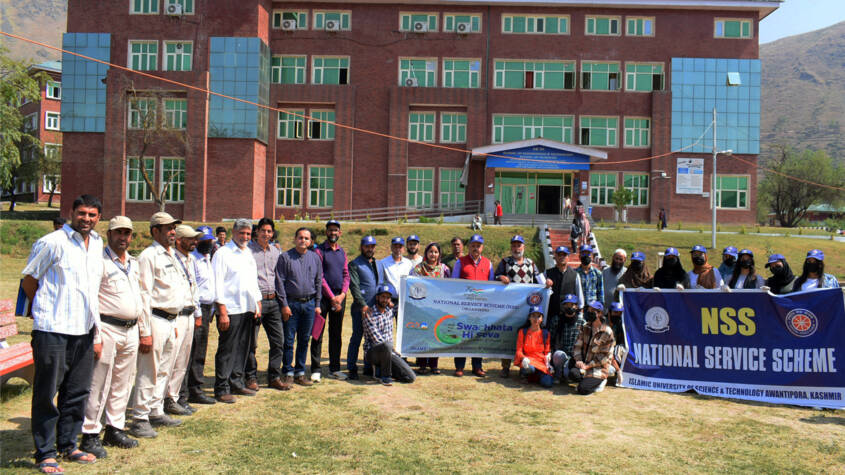 Awantipora, Sept. 27 –Islamic University of Science and Technology held an environmental awareness programme under “Swachhata Hi Seva” campaign, extending from September 15th to October 2nd, 2023, in accordance with the guidelines of the Ministry of Youth Affairs and Sports, Government of India.