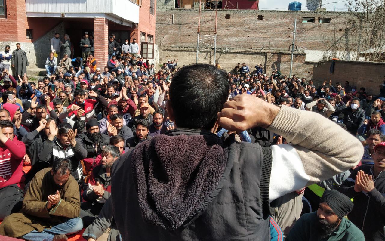 PDD’s PDL/TDL employees stage protest in Awantipora, demand redressal of issues
