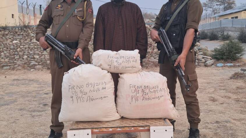 Acting on specific information, a Police team from Aishmuqam Police Station established a checkpoint at Ainoo Brah and intercepted a suspect, identified as Shabir Ahmad Hajam, son of Habibullah Hajam, a resident of Ainoo Brah. Upon searching, approximately 750 grams of cannabis powder and 8 kilograms of cannabis husk were recovered from his possession.