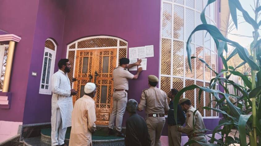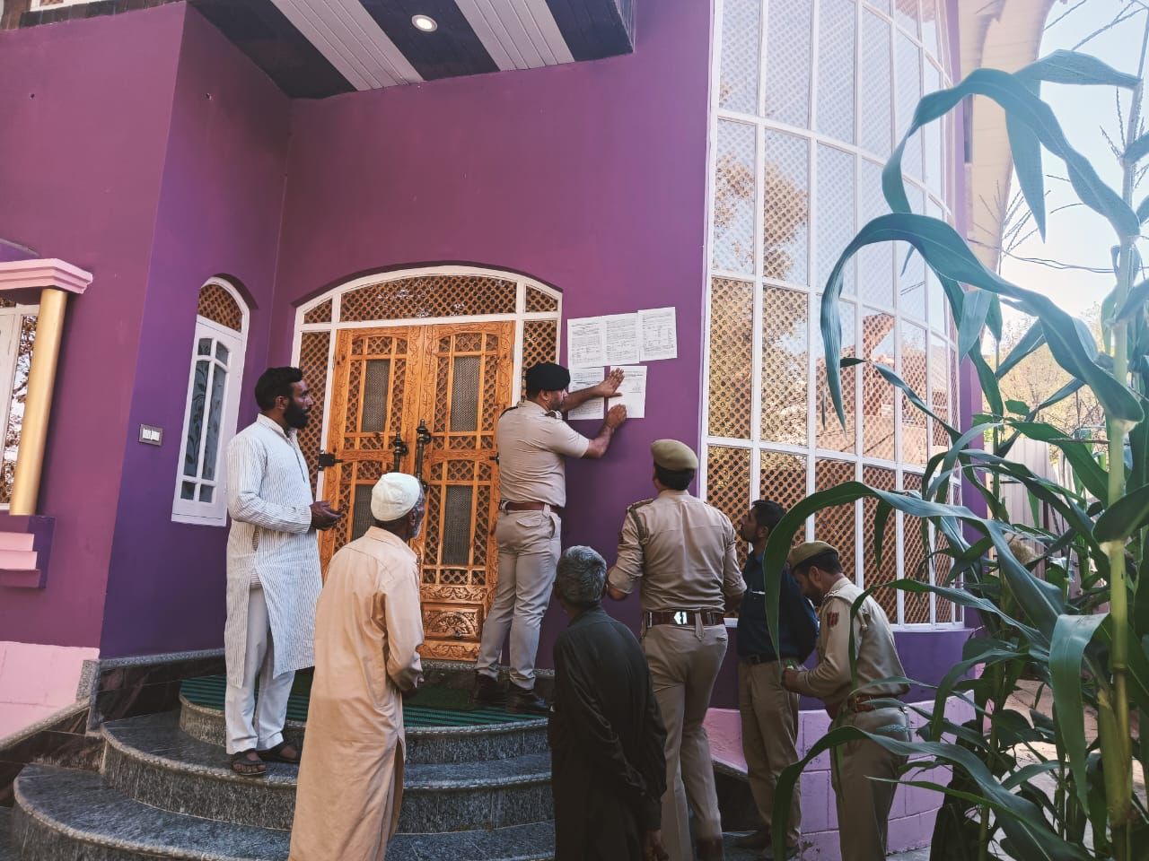 Awantipora: Continuing its Operation against drug peddlers Awantipora Police today attached Two(02) single-storied, residential houses valuing approximately Thirty Nine Lacs belonging to two notorious drug peddlers namely Mukhtar Ahmad Rather S/o Gh Ahmad Rather R/O Hariparigam and Abdul Qayoom Bhat S/O Ab Khaliq Bhat R/O Larkipora under section 68-Fof NDPS Act 1985.