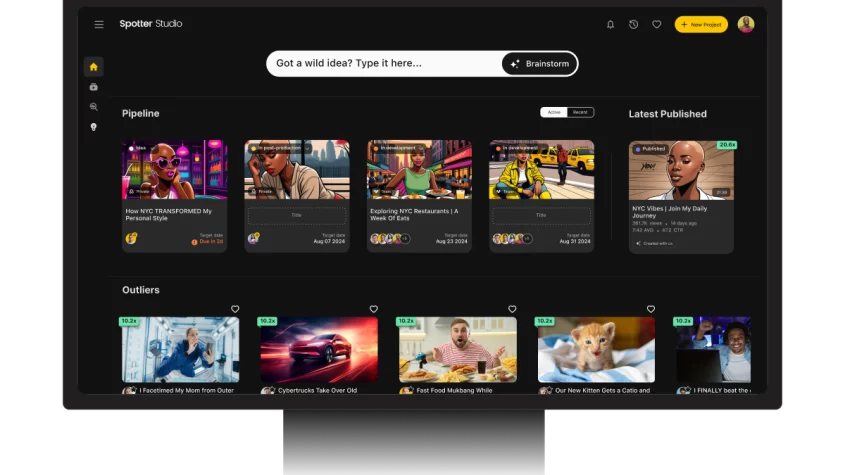 Spotter ,the startup that provides financial solutions to content creators, announced Tuesday the launch of its new AI-powered creative suite. Dubbed Spotter studio the solution aims to support YouTubers throughout the creative process, such as helping them brainstorm video concepts, generate thumbnail and title ideas, plan projects, organize tasks and collaborate with their team.