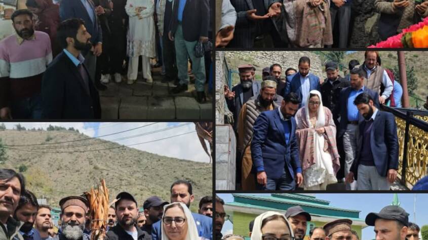 Chairperson of Jammu and Kashmir Waqf Board Dr Syed Darakhshan Andrabi today visited the sufi shrines of Hazrat Sakhi Zainuddin Wali (RA) at Aishmuqam and Sarbal Pahalgam on the Annual Urs eve. She paid obeisance at the shrines and prayed for the peace and prosperity of all. Dr Andrabi was accompanied by the representatives of different government departments and the Waqf Board. She took stock of the facilities for the Urs. Andrabi took a tour of the on-hill market leading to the shrine at Aishmuqam and directed to manage utmost cleanliness around. Waqf Board Chairperson took stock of the ongoing development works at both the shrines at Aishmuqam and Sarbal. She gave a time line for the completion of these works. Dr Andrabi. Dr Darakhshan later spoke to media and assured that the transformative works within Waqf Board will continue and there was no scope oftge reversal of the changes. She said that those who are hurt by the transparency and accountability within the Waqf system are shouting full pitch and speaking about the reversal of the much appreciated changes in Waqf Board here. “Amid this opposition from the illegal beneficiaries of Waqf,whose claim on the public assets was nullified, we continued with the changes and now people at the ground level are appreciating and cooperating with us”, said Andrabi. She said that come what may our mission of strengthening our Sufi centers will continue.”Sufi spiritual tradition is our identity rooted in peace & harmony. We have to strengthen this glorious tradition. We have to reunite our society by promoting the Sufi ideology of inclusivity in the society”, said Dr Darakhshan.