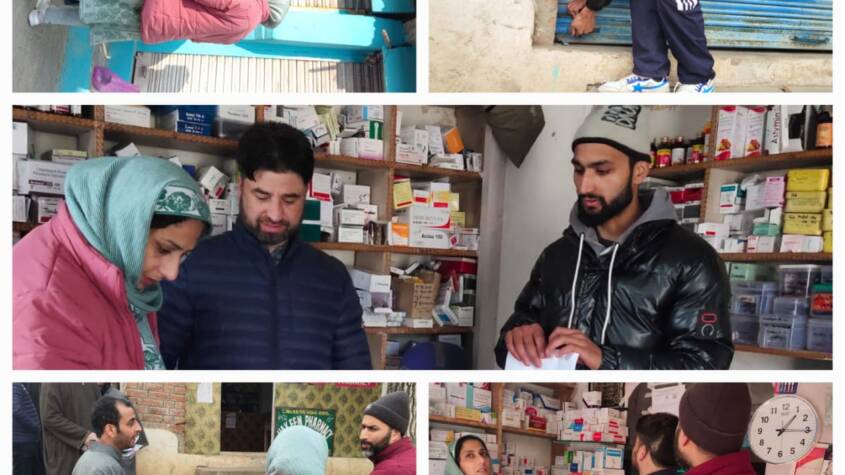 Anantnag: To ensure that Schedule H1 drugs are dispensed to the general public as per the Rules of Drugs and Cosmetics Act, a team of Drug Control Officers under the supervision of Assistant Drug Controller Anantnag Miss Rumeesa Mohammad on Tuesday conducted special inspections in Shangus, Nowgam areas of Anantnag district.